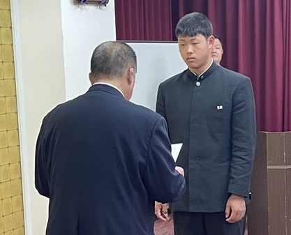 市長は「この度は、永松選手におかれましては世界選手権に向けての全日本選手権の出場決定をはたされ心よりお祝い申し上げます。これも日ごろからの厳しい練習にしっかりと精進した賜物だと思います。また、学校あげての応援の成果だと心よりお慶び申し上げます。永松選手は中学の頃から全国の大会に出場し、昨年の大会でもご活躍されている姿が目に焼き付いています。宇佐市は双葉山の出身地で相撲どころでございます。その宇佐の地から着実にステージをあげている永松選手は、ぜひとも予選を勝ち抜いて日の丸を背負ってご活躍される選手になりますよう心より祈念申し上げます。」とあいさつしました。